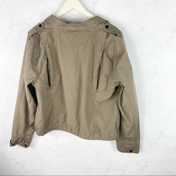 Torrid Classic Brown Crop Twill Utility / Military / Cargo Jacket. Long Sleeves. Snap Collar. Snap Pockets. Snap Zip Up Placket. Snap Sleeves. Zipper & Snaps Down the Middle. Loose & Lightweight. Super Cute & Comfy. Good Condition. No Stains or Rips.Trendy, versatile, lightweight jacket that is great for casual everyday wear. Perfect for fall weather, date night, a night out, or running errands!(1108)